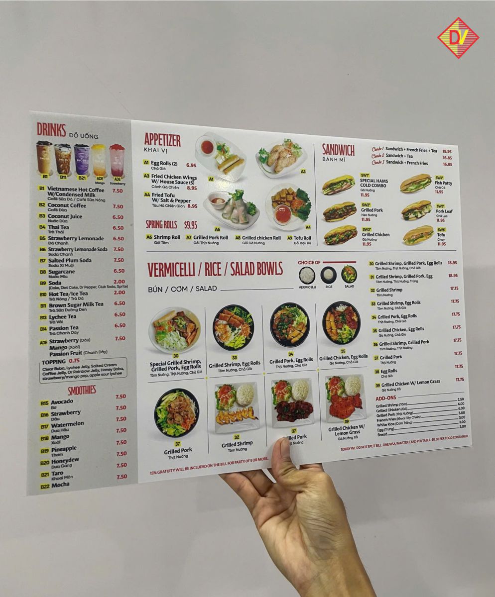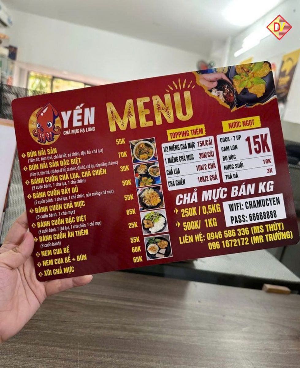 • MENU MICA DECAL ĐẸP - IN UV SẮC NÉT, CHỐNG NƯỚC, BỀN LÂU